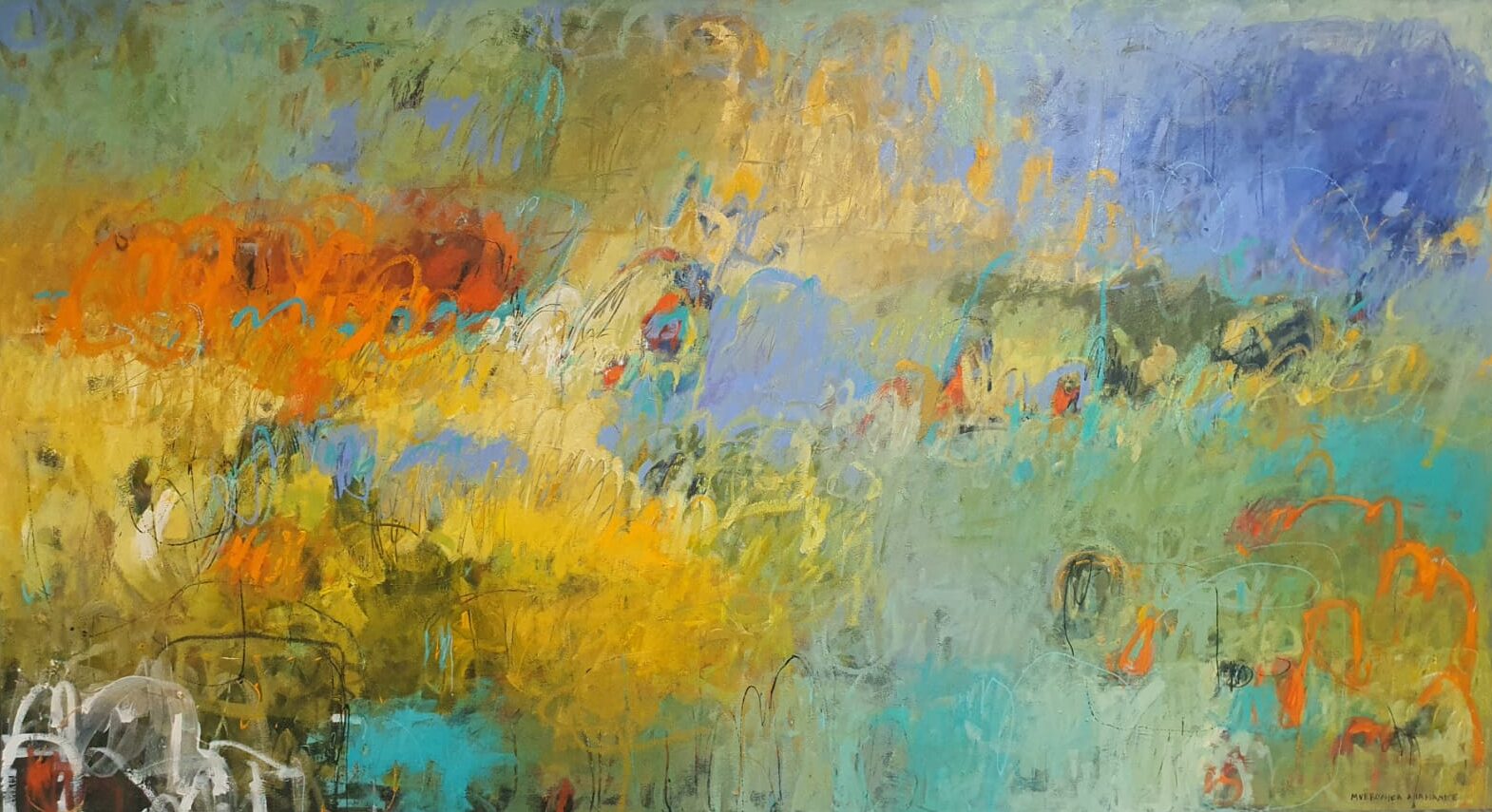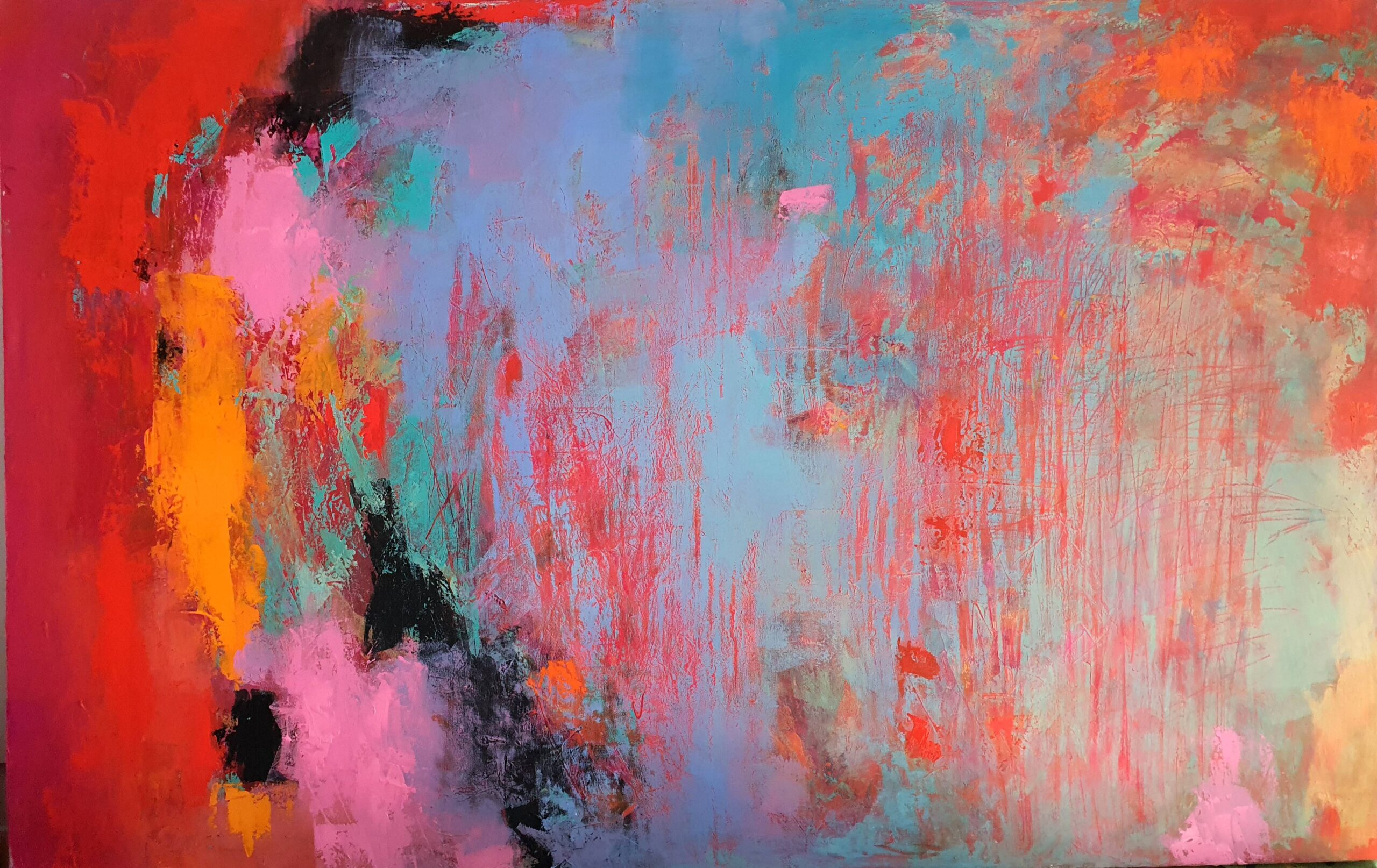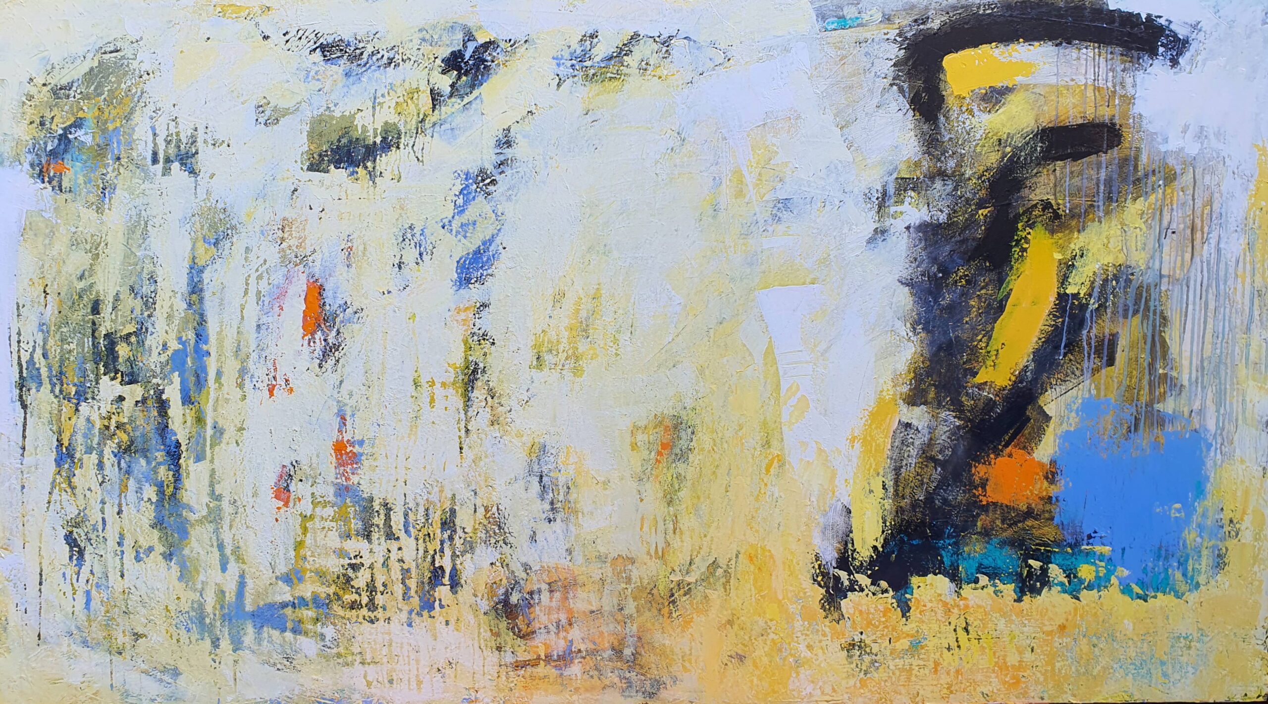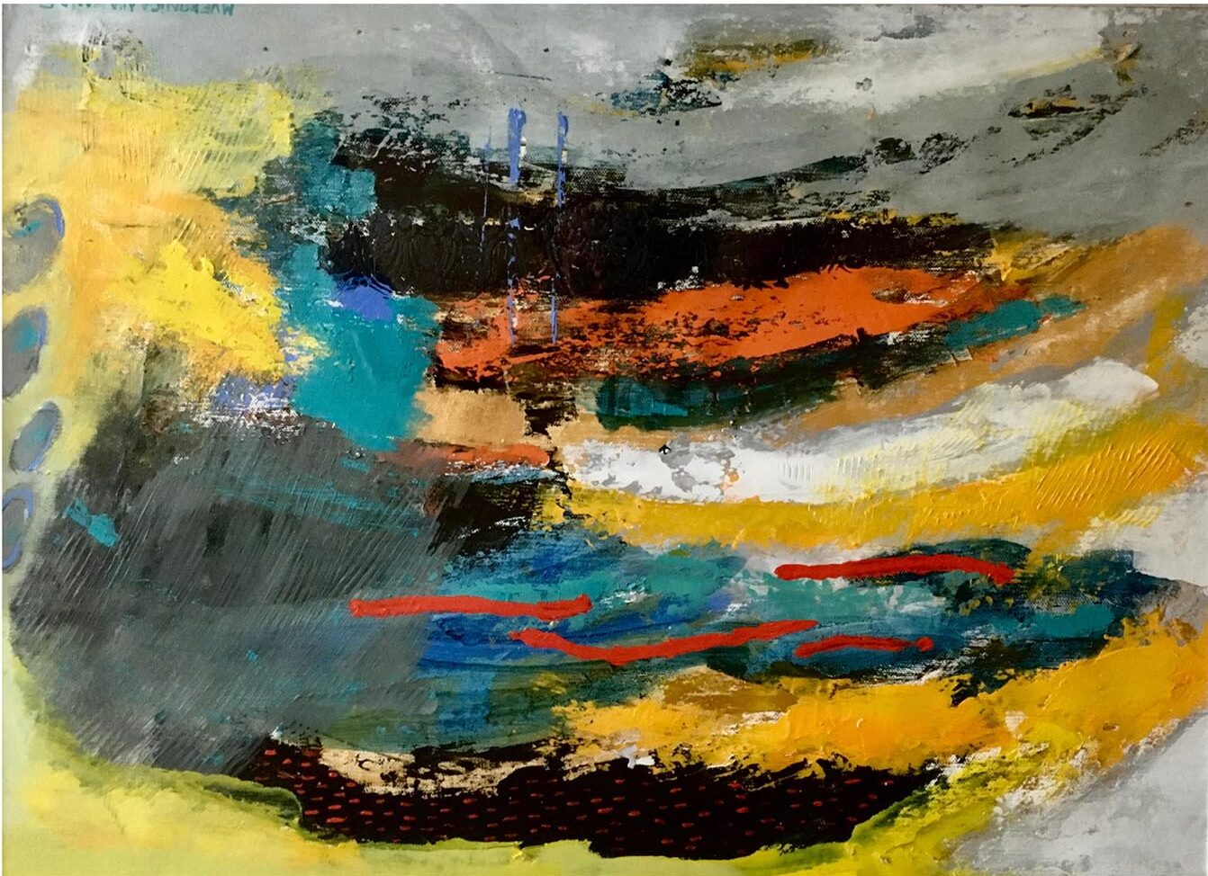 Poco a poco mi abstracto va cobrando sentido, los dorados emergen bajo los tonos turquesas y blancos, recordándome el mar del caribe, donde quisiera estar en este minuto. Cierro los ojos y pienso en esas aguas cristalinas color turquesa que me invitan al descanso y la meditación. Que mejor que mecerse en una hamaca mirando este espectacular color seducirte para entrar a él.
