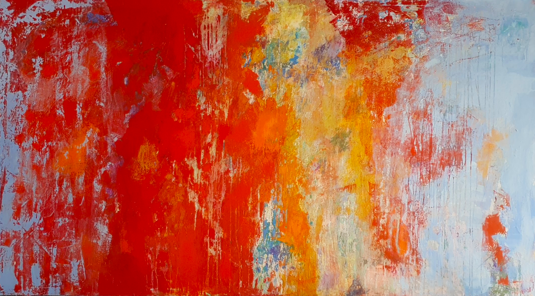 Llueve y el cielo arde en tonos rojo fuego. Las nubes cargadas de truenos y lluvia dejan entre verlos últimos rayos de sol de un verano que se despide ante la brisa del otoño. los grises se tiñen de malvas, rosas, magentas y amarillos. El sol se aleja dando su mejor espectáculo del día.
