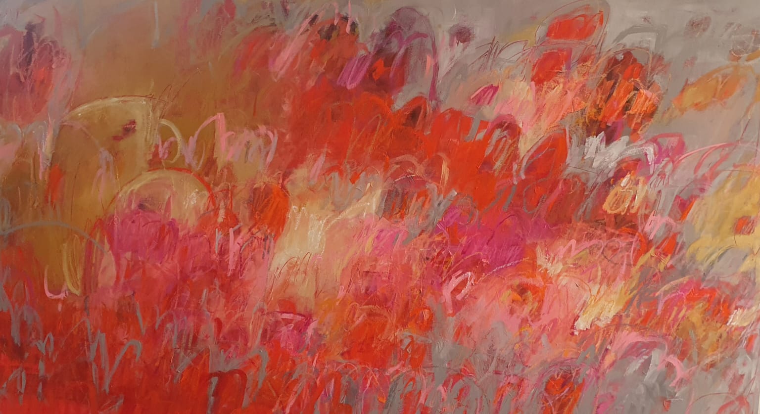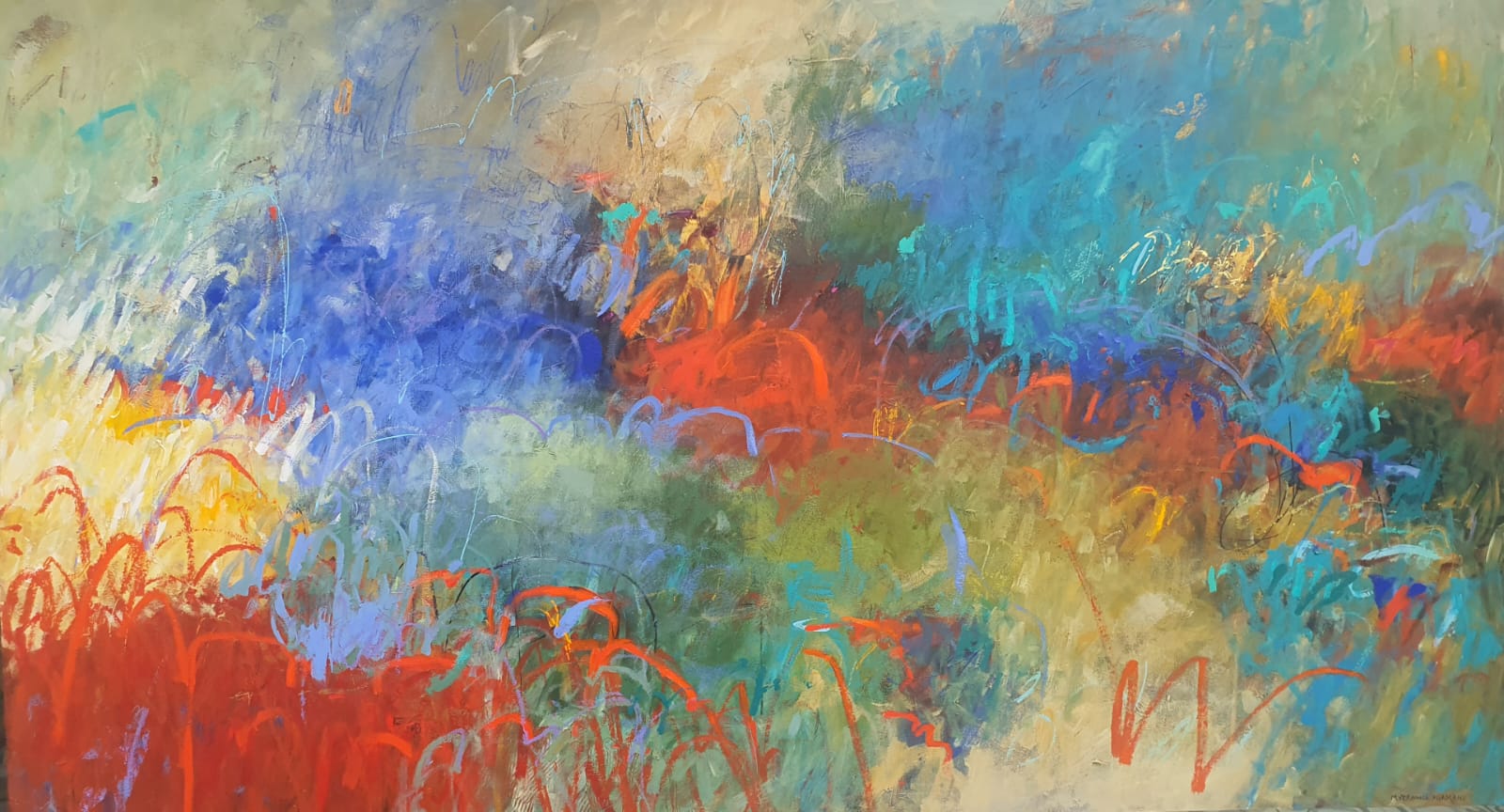 Te recuerdo hermosa, caminando por tu jardín como si el tiempo se hubiese detenido para ti. Las primaveras permanecieron eternas en honor a la luz de tu alma. Tus manos cansadas, tu piel tan delgada como el pétalo de una flor, que ahora son las rosas de mi jardín. Te recuerdo frágil, etérea, silenciosa, dulce. Me regalaste todo. Me dejaste tu luz, tu energía, tu sabiduría, tu ser en mí. Jamás desaparecerá tu memoria. Te imagino hermosa abrazándome en medio de nuestro jardín de rosas. Jardín de rosas 100x180 cm 2021